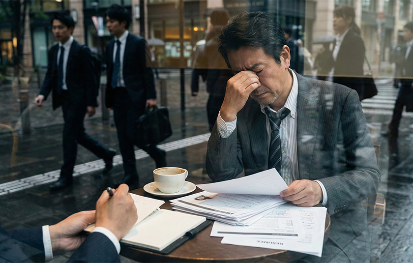 彼の前には、何枚もの履歴書が積み上げられていました。 彼は、その紙切れの中に「正解」があると思い込んでいるようでした。